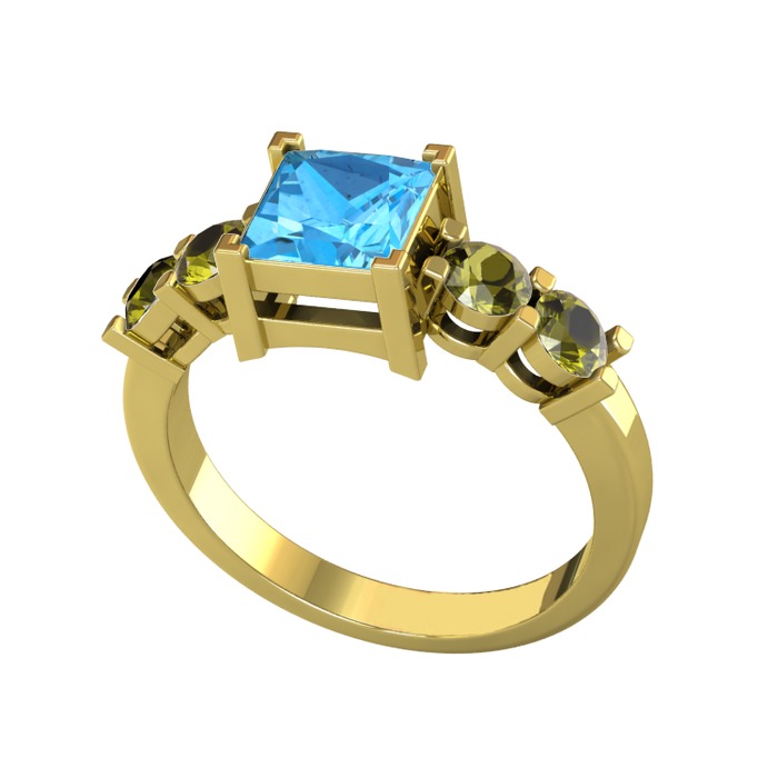 Akuamarin ve peridot 8 ayar altın yüzük