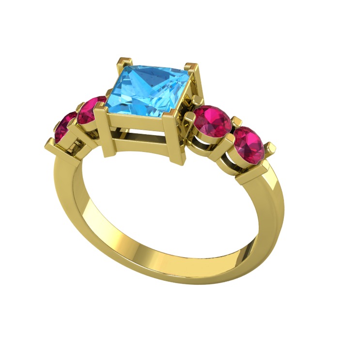 Akuamarin ve rodolit garnet 925 ayar altın kaplama gümüş yüzük