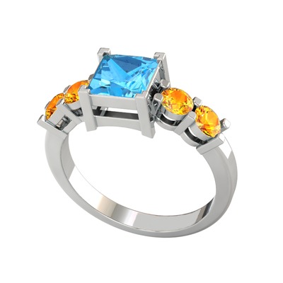 Akuamarin ve sitrin 14 ayar beyaz altın yüzük