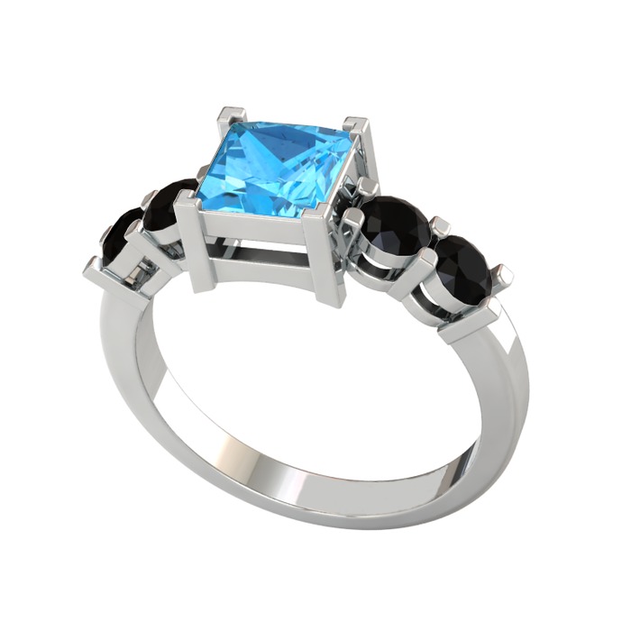 Akuamarin ve siyah zirkon 925 ayar gümüş yüzük