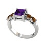 Ametist ve dumanlı kuvars 8 ayar beyaz altın yüzük