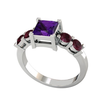 Ametist ve kök yakut 14 ayar beyaz altın yüzük