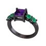 Ametist ve kök zümrüt 925 ayar siyah rodyum kaplama gümüş yüzük