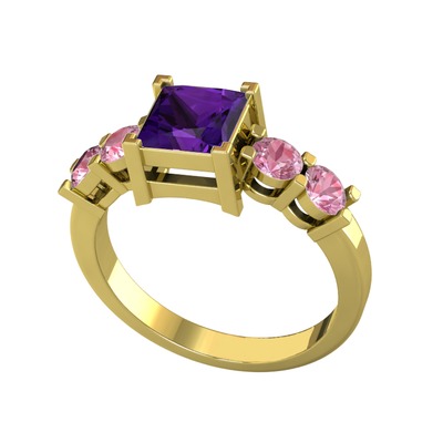 Ametist ve pembe kuvars 14 ayar altın yüzük