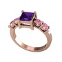 Ametist ve pembe kuvars 925 ayar rose altın kaplama gümüş yüzük