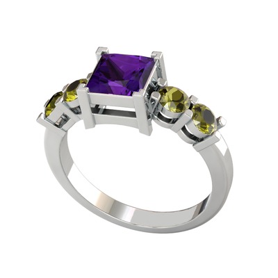 Ametist ve peridot 925 ayar gümüş yüzük