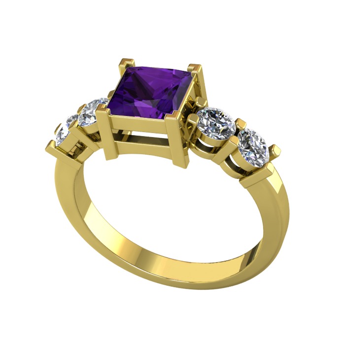 Ametist ve pırlanta 14 ayar altın yüzük (0.64 karat)