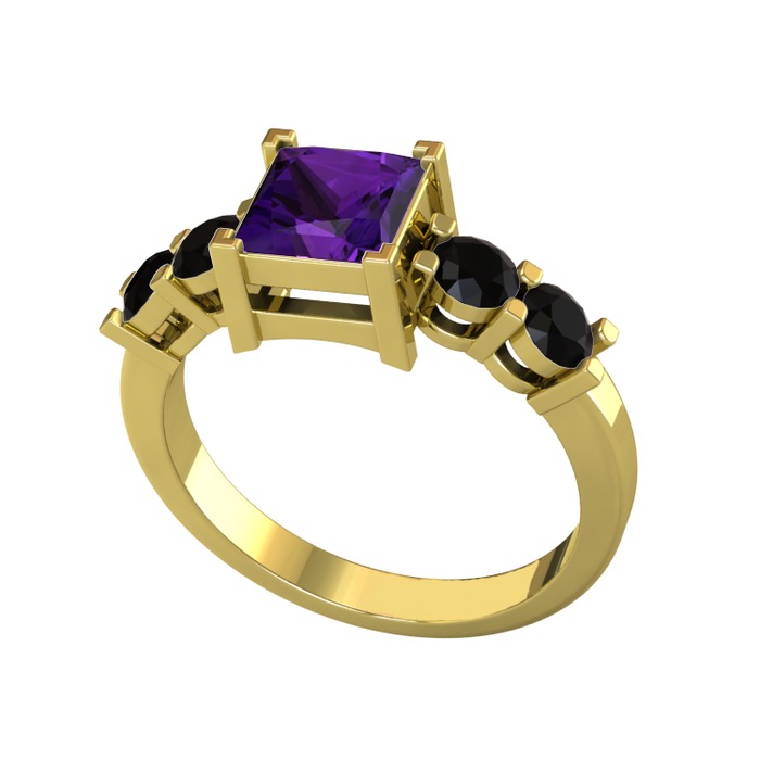 Ametist ve siyah zirkon 14 ayar altın yüzük