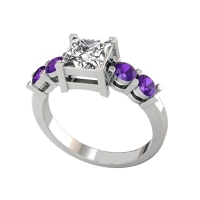 Beyaz zirkon ve ametist 925 ayar gümüş yüzük