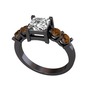 Beyaz zirkon ve dumanlı kuvars 925 ayar siyah rodyum kaplama gümüş yüzük