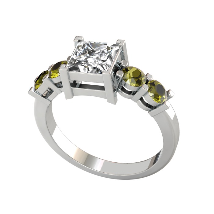 Beyaz zirkon ve peridot 18 ayar beyaz altın yüzük