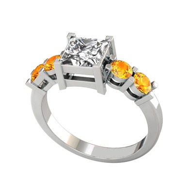 Beyaz zirkon ve sitrin 14 ayar beyaz altın yüzük