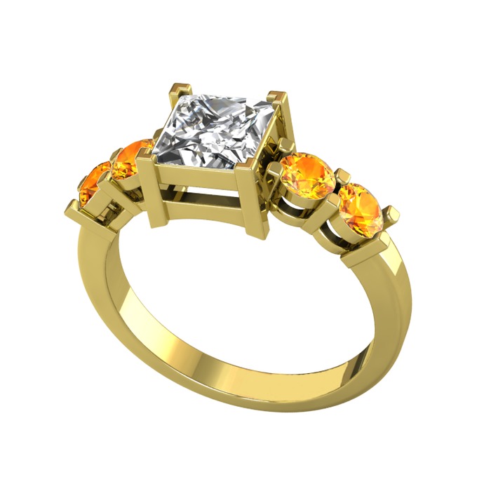 Beyaz zirkon ve sitrin 8 ayar altın yüzük