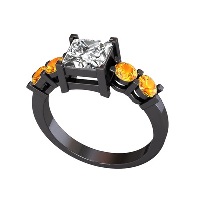 Beyaz zirkon ve sitrin 925 ayar siyah rodyum kaplama gümüş yüzük