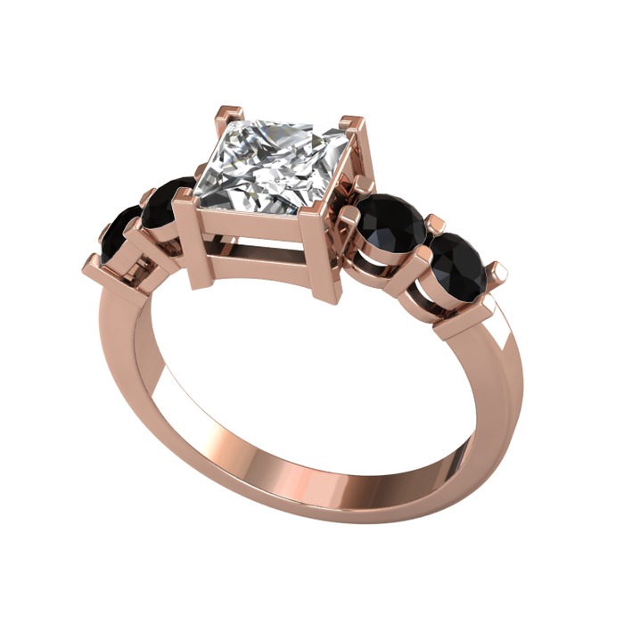 Beyaz zirkon ve siyah zirkon 14 ayar rose altın yüzük