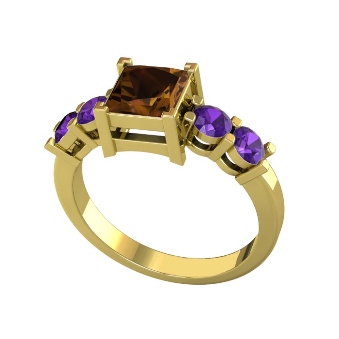 Dumanlı kuvars ve ametist 925 ayar altın kaplama gümüş yüzük