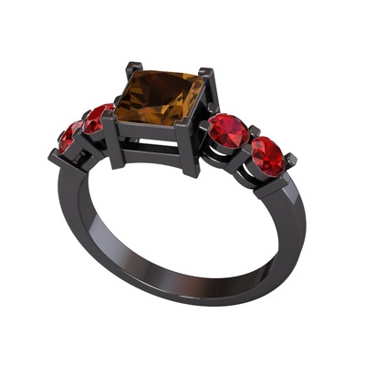 Dumanlı kuvars ve garnet 925 ayar siyah rodyum kaplama gümüş yüzük
