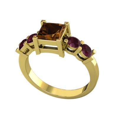 Dumanlı kuvars ve kök yakut 925 ayar altın kaplama gümüş yüzük
