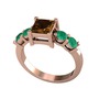 Dumanlı kuvars ve kök zümrüt 925 ayar rose altın kaplama gümüş yüzük