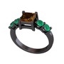 Dumanlı kuvars ve kök zümrüt 925 ayar siyah rodyum kaplama gümüş yüzük
