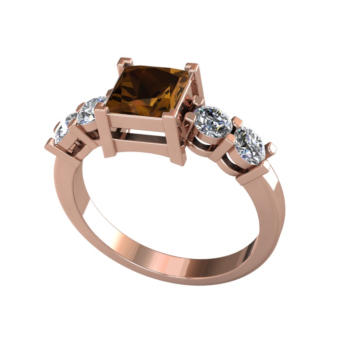 Dumanlı kuvars ve pırlanta 925 ayar rose altın kaplama gümüş yüzük (0.64 karat)