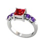 Garnet ve ametist 14 ayar beyaz altın yüzük