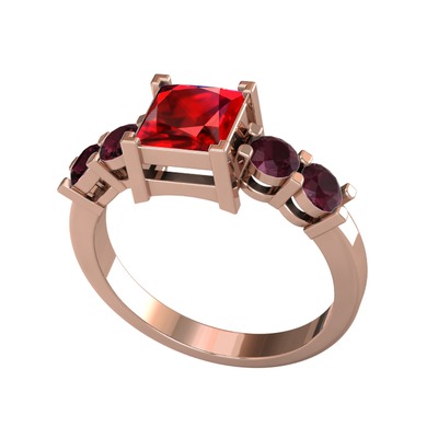 Garnet ve kök yakut 925 ayar rose altın kaplama gümüş yüzük