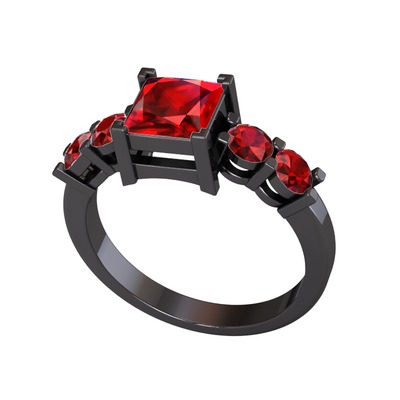 Garnet 925 ayar siyah rodyum kaplama gümüş yüzük