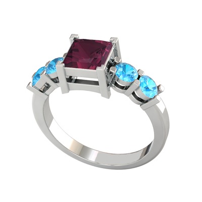 Kök yakut ve akuamarin 14 ayar beyaz altın yüzük