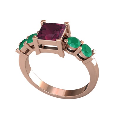 Kök yakut ve kök zümrüt 18 ayar rose altın yüzük