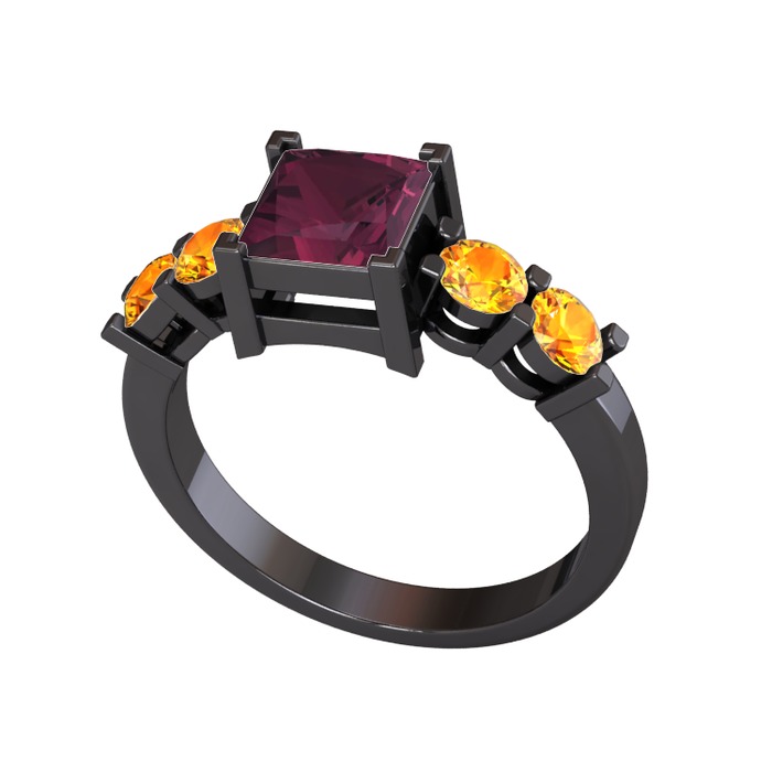 Kök yakut ve sitrin 925 ayar siyah rodyum kaplama gümüş yüzük