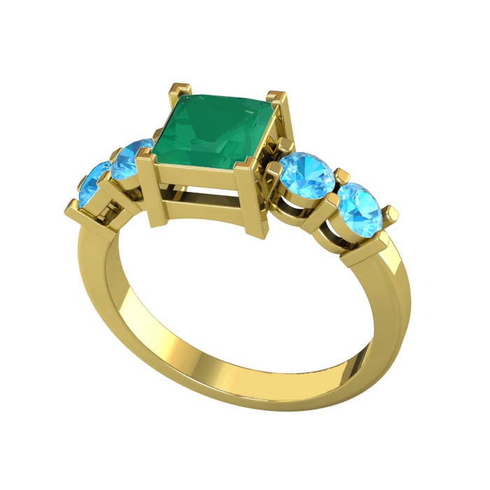 Kök zümrüt ve akuamarin 8 ayar altın yüzük