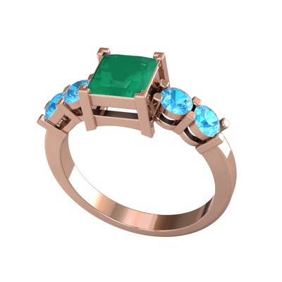 Kök zümrüt ve akuamarin 8 ayar rose altın yüzük