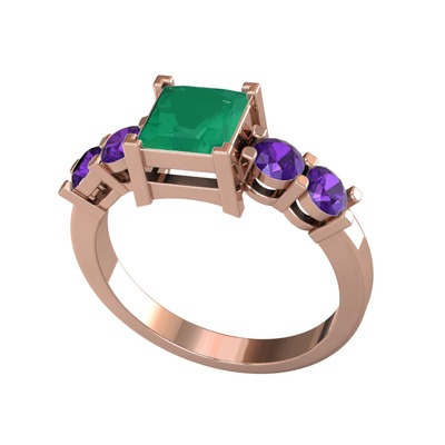 Kök zümrüt ve ametist 18 ayar rose altın yüzük