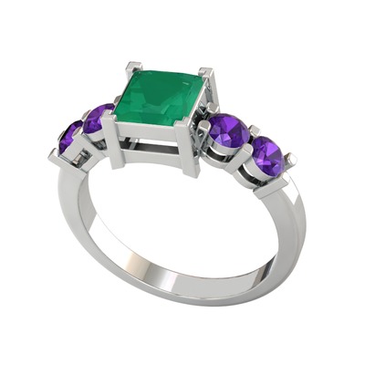 Kök zümrüt ve ametist 8 ayar beyaz altın yüzük