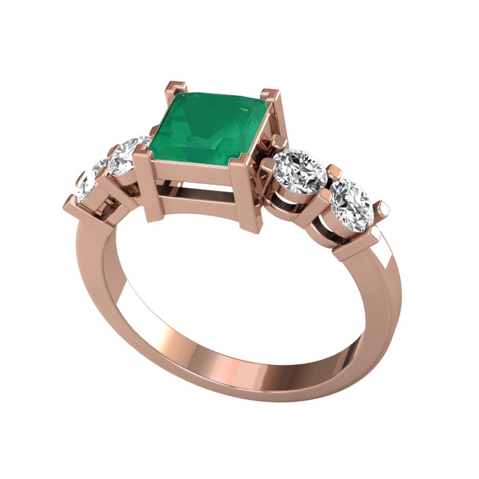 Kök zümrüt ve beyaz zirkon 14 ayar rose altın yüzük