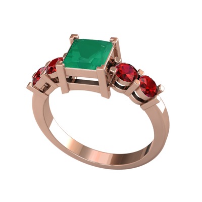 Kök zümrüt ve garnet 18 ayar rose altın yüzük