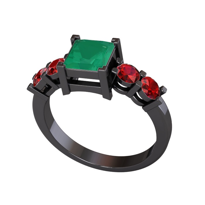 Kök zümrüt ve garnet 925 ayar siyah rodyum kaplama gümüş yüzük