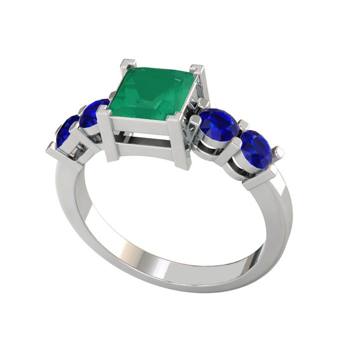 Kök zümrüt ve lab safir 8 ayar beyaz altın yüzük