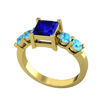 Lab safir ve akuamarin 8 ayar altın yüzük