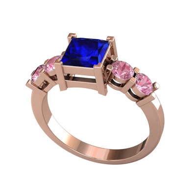 Lab safir ve pembe kuvars 925 ayar rose altın kaplama gümüş yüzük