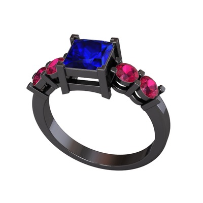 Lab safir ve rodolit garnet 925 ayar siyah rodyum kaplama gümüş yüzük