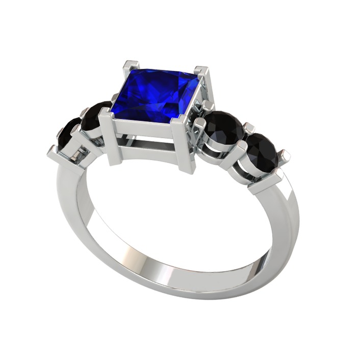 Lab safir ve siyah zirkon 14 ayar beyaz altın yüzük