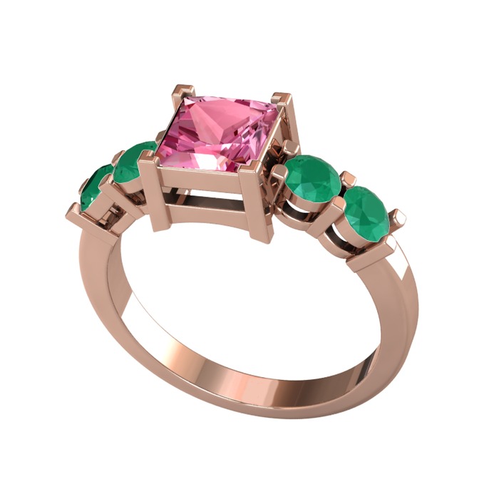 Pembe kuvars ve kök zümrüt 18 ayar rose altın yüzük
