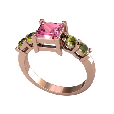 Pembe kuvars ve peridot 18 ayar rose altın yüzük