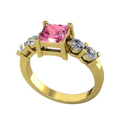 Pembe kuvars ve pırlanta 14 ayar altın yüzük (0.64 karat)
