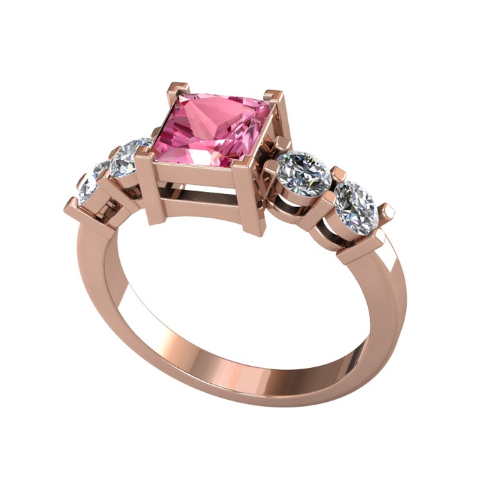 Pembe kuvars ve pırlanta 14 ayar rose altın yüzük (0.64 karat)