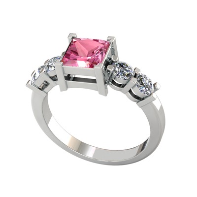 Pembe kuvars ve pırlanta 8 ayar beyaz altın yüzük (0.64 karat)