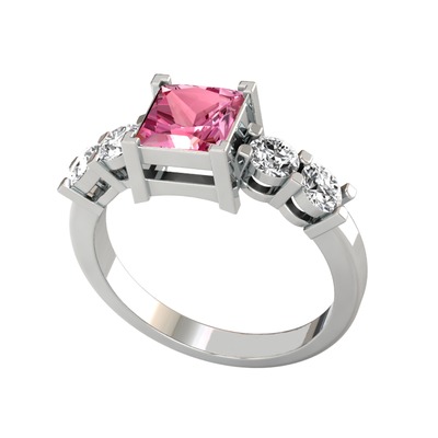 Pembe kuvars ve swarovski 18 ayar beyaz altın yüzük