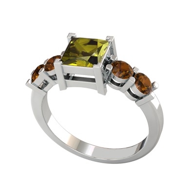 Peridot ve dumanlı kuvars 18 ayar beyaz altın yüzük